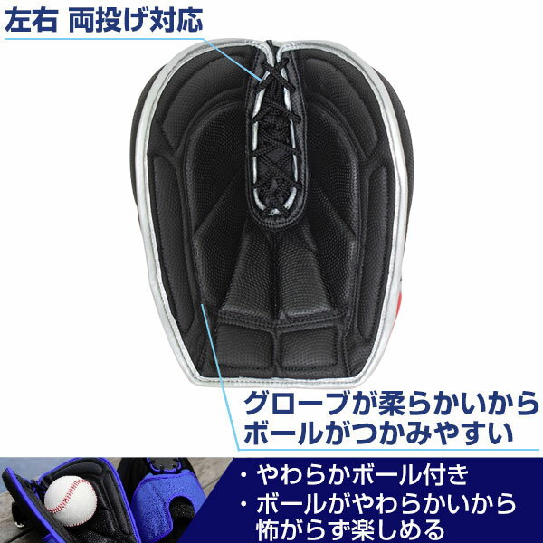 ボールがやわらかいから怖がらず楽しめる■手のひら部分を使ってボールを打つ遊びもできる■左右両投げ対応※本商品はやわらかい素材を使用しています。