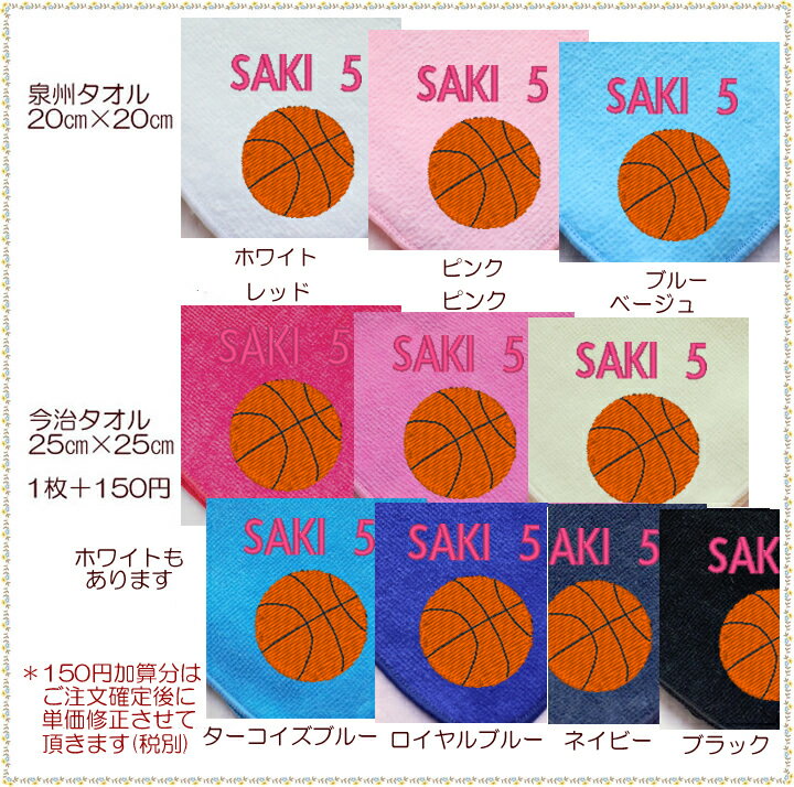 1枚から作成 バスケットボール 名入れ 刺繍入り タオルハンカチ 卒業 卒団 記念品 におすすめ!メール便でのお届けも可能です