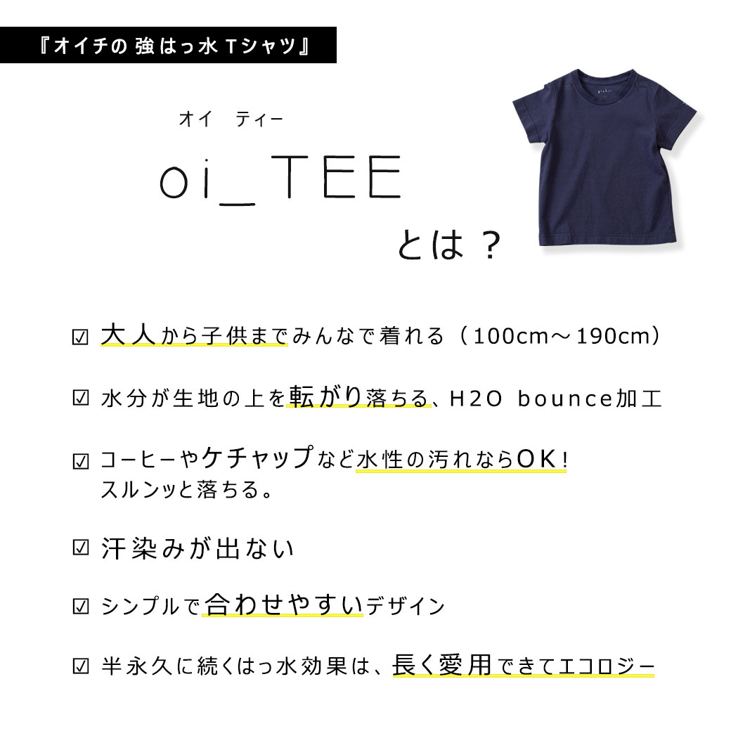 《アイテム名》 oi_TEE(オイティー)強はっ水 半袖Tシャツ【100cm-140cm】 《ブランドヒストリー》 oichiiは「ファッション」×「食事」をテーマに世界中の食卓をもっと楽しいものにするための商品を展開するライフスタイルブランドです。