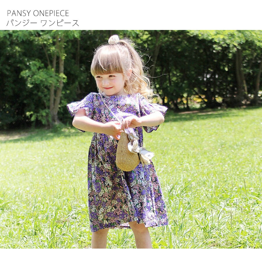 いろんなお花を咲かせて夏らしい華やかさを加えた子供服ワンピースは、夏にほしくなる愛されパープル色が女の子のおしゃれ気分を盛り上げてくれます♪